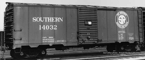 The Southern Railway received it’s rst delivery of 2,559, 1937 AAR 10’-0” IH design boxcars in 1937, all with white stencil paste lettering and WITHOUT the