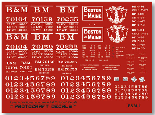 ![]() In August 1919, the B&M received 500 USRA approved design boxcars from AC&F under Lot 8571, and assigned Series numbers 70000-70499. The cars were delivered with B&M’s rectangle monogram and painted freight car brown: TCP-19. After WW II the cars were repainted with a slightly redder shade of brown (TCP-198) with the new Minuteman emblem. In 1939 there were 496 remaining in revenue service. These were primarily used in bulk grain service. By 1950, 42 cars remained in service. Decal set designed and created at Protocraft Decals An accurate model of this car is Pacific Limited #900 Printed by Microscale Industries ![]() ![]() Background color shown above is not included in decal sheet |