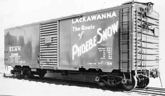 the DL&W introduced the Phoebe Snow slogan advertising clean steam engine exhaust, and in 1949, for their crack passenger train PHOEBE SNOW between