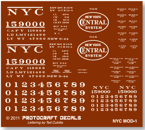 Previous Return to list of all decals in this line NYC Next Lettering for New York Central Modified 1937 AAR boxcars - as delivered scheme