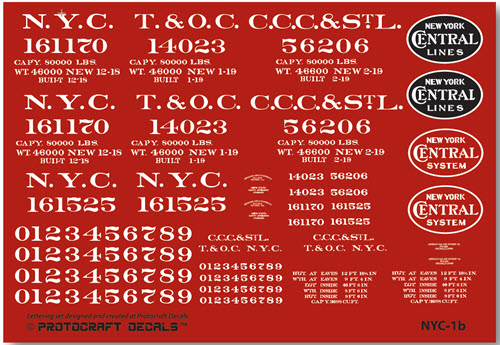 lettering for NYC’s USRA design 9’-0” IH double-sheathed boxcars NYC, T&OC, CCC&StL