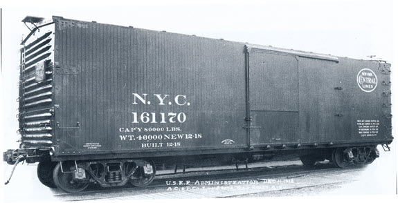 In December 1918 the NYC received 500 double-sheathed boxcars of the USRA approved design from American Car & Foundry under Lot 8572. These were assigned as Series 161000-161499 and designated as NYC Lot 394-B. In 1937 cars were renumbered into Series 278000-278999.