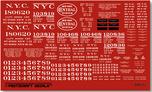 oval had a clear background. When the Gothic scheme was adopted in 1955, the NYC went back to having black backgounds in the oval. This decal sheet