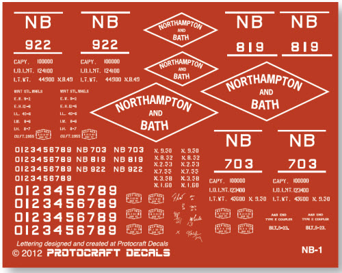 ![]() The NB received 218 cars between 1931 and 1935 that were originally built by AC&F, Lot 9577, in 1923 in an order for 300 cars for Universal Portland Cement, Series 701-1000. (Note: Hannibal Connecting received an additional 65 cars from Portland Cement.. The remainder of the cars went to Universal Atlas Cement Co.) For a comprehensive study of individual car numbers it is best to consult the charts in Ed Hawkins and Pat Wider’s RP CYC , Vol 21, page 90. Decal set designed and created at Protocraft Decals ![]() ![]() Background color shown above is not included in decal sheet |