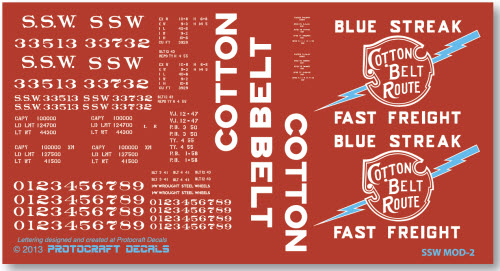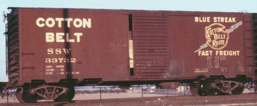 In March of 1941, the SSW took delivery of 200 Modied 1937 AAR design box cars. These cars were built in SSW’s shops and assigned series numbers 33500- 33699. In December 1943, an additional 150 cars were built in SSW shops as Series 33700-33849. ![]() ![]() Background color shown above is not included in decal sheet |