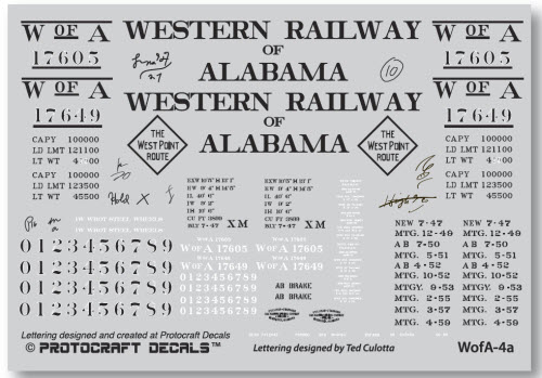 The WofA was part of the “West Point Route” under parent Georgia Railroad which included the Atlanta & West Point Railroad, all three operating as one railroad. ![]() Background color shown above is not included in decal sheet |