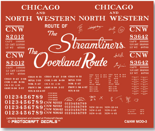 Paint color would be TCP-923 for cars built in 1941-42; and TCP-925 for cars built in 1943-59. The modeler will just have to chose his individual model carefully, preferably from a prototype photograph. Lettering all white stencil paste. Decal set designed and created at Protocraft Decals