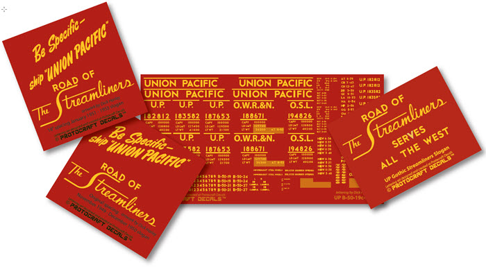 Return to list of all decals in this line UP Next lettering for Union Pacific’s B-50-19/27 Armour Yellow Gothic 1947/56 schemes (3 options)