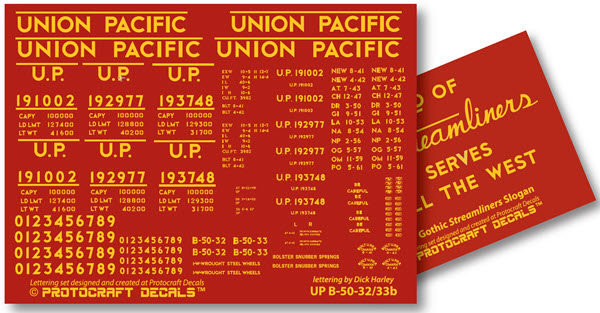 Previous Return to list of all decals in this line UP Next lettering for Union Pacific’s B-50-32/33 Gothic 1947-1956 Armour Yellow scheme