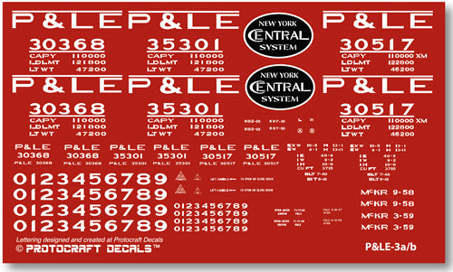 in large block letters and the slogan “Serves the Steel Centers” as added (P&LE-3b). See decal set P&LE-3 for the earlier schemes. (in May 1959,