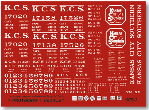 Paint & Lettering: Cars were painted a red-brown: TCP 181 up to 1950, then TCP 202. Underbody and truck side frames coated with black car cement. Lettering was all white stencil paste. As-delivered, the cars were lettered with KANSAS CITY SOUTHERN spelled out on the right side. Around 1953, the road name was replaced with the new octigon logo and the 1 inch lines above and below the reporting marks were discontinued.