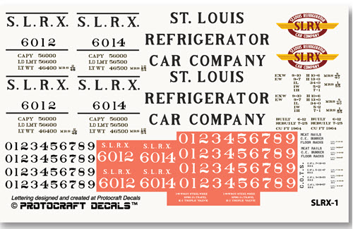 ![]() The St. Louis Refrigerator Car Company purchased used or leased wood refrigerator cars for hauling Anheuser-Busch beer. Although designated as refrigerator cars, the ICC designation was RB rather than RS or RSM, as cars had no ice hatches. In 1940, the SLRX listed 502, 36’ wood refrigerator cars of 55,000 lbs. capacity. Series ranged from 2101 to 4109, then skipped to the remaining 120 truss-rod cars in Series 6000-6150, with 40’ cars in between. ![]() ![]() Background color shown above is not included in decal sheet |