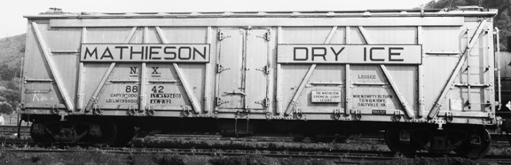 During the 1950’s Mathieson Chemical Co leased 15 R-7’s from NRC for dry ice hauling service. Series were NX 8840-8854.
