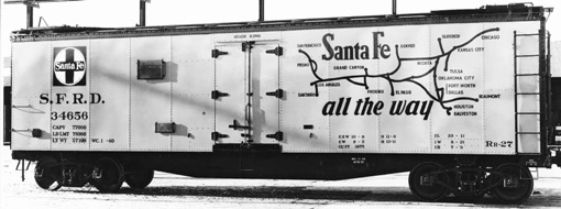 to disinguish them as having fans. Cars were painted Santa Fe reefer orange with black car cement applied to the roof, ends, under door toe