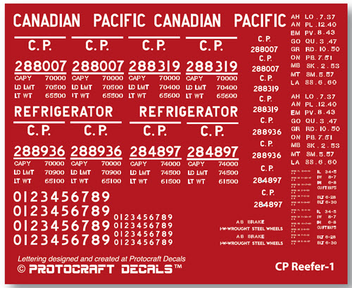 Previous Return to list of all Refrigerator Car Decals in 1:48 scale Next lettering for CP’s wood refrigerator cars - 1952 lettering scheme