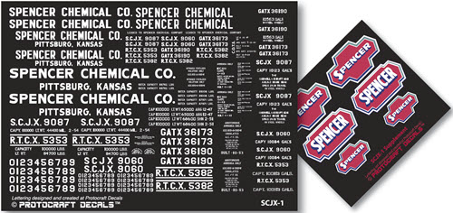 Paint & Lettering: The majority of Spencer’s owned and leased tank cars were painted all black with white stencil paste lettering and it’s very noticable red and white medallion. The medallions were dierent and the modeler should refer to a specic in-service photographs as to its application and placement.