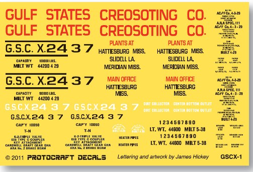 Previous Return to list of all Tank Car Decals in 1:48 scale Next Lettering for Gulf States Creosoting Co. tank car