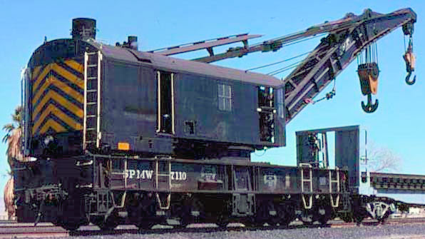 ![]() The SP employed 20 some odd 120 ton cranes to provide emergency service for train wrecks and other lifting jobs, and stationed them at major shops or sidings near potential mishap areas. The first set of 10 cranes were built by Industrial-Works of Bay City, Michigan. Photos have provided numbers 7000, 7002, 7005 and 7011. Another set of almost identical cranes were built by Bucyrus-Erie: photos show numbers 7014, 7015, 7020 and 7021. Note: Bycyrus-Erie also built SP’s 200 ton cranes: photos show 7110 and 7114. ![]() ![]() Background color shown above is not included in decal sheet |