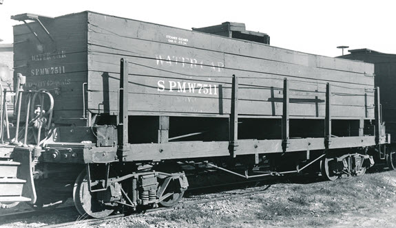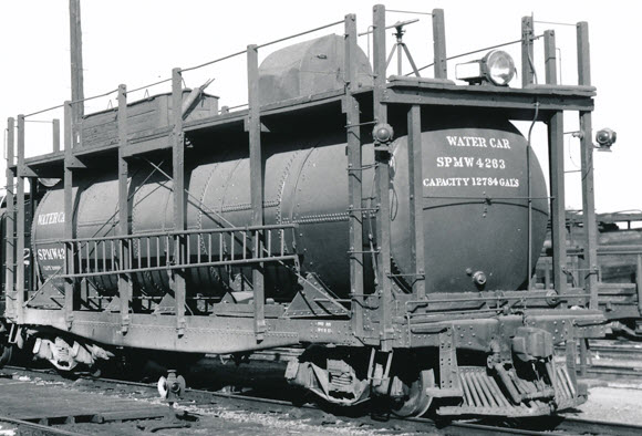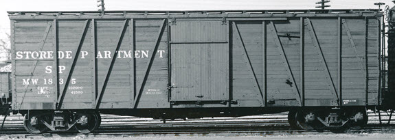 This decal set covers wood boxcars converted to crew sleeping quarters - usually B-50-4, 5 and 6’s, and stores boxcars, water cars and maintenance cars. The modeler can pretty much follow these photographs (or other photographs) to create an accurate work car or a number of different ones to make up a typical SP work train by cutting in windows and doors, side ladders and smoke jacks.