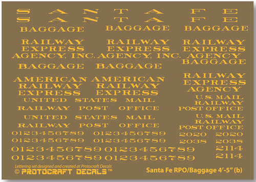 Previous Return to list of all Passenger & Head End Cars decals in 1:48 scale Next DULUX (imitation) Gold lettering for Santa Fe’s RPO & Baggage cars - 1950-1971