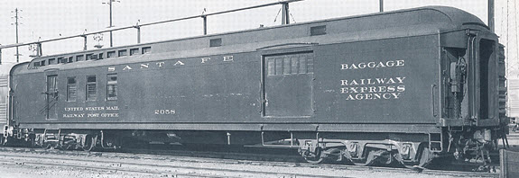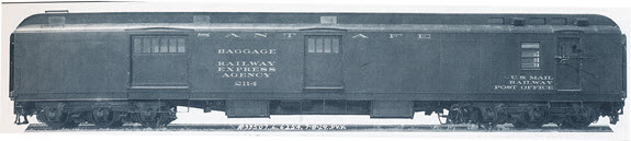 Lettering: Between 1918 and 1950, the Santa Fe lettered all heavyweight head-end and passenger car’s letterboard with 5” tall extended Roman lettering in gold leaf. After 1950 and until 1971, lettering was in Dulux (imitation) gold. (note: between 1910 and 1918, the lettering was the same except 5“ car numbers were placed near each end of the side with 2” A.T&S.F. railroad initials placed below car numbers - this was eliminated in the early 1920’s) In 1929, the newly formed Railway Express Agency 5” lettering replaced the ‘Wells Fargo & Company’ and EXPRESS’ on baggage cars. For head-end cars with express messenger facilities (a seat and toilet facilities) on board, a 6” tall ve-pointed star was placed above the word BAGGAGE. For horse express cars, “BAGGAGE EXPRESS AGENCY” and “HORSE EXPRESS’ were in standard Railroad Roman 2” lettering.