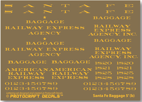 DULUX (imitation) Gold lettering for Santa Fe Baggage cars - 1950-1971