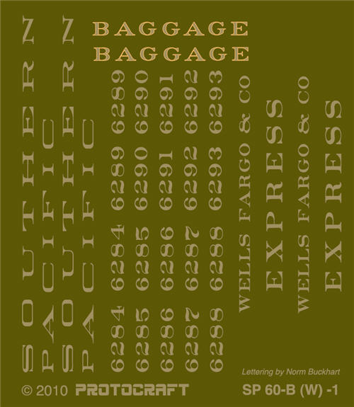 Previous Return to list of all Passenger & Head End Cars decals in 1:48 scale Next SP 60' wood baggage car - 1906 lettering scheme