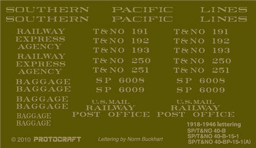 Previous Return to list of all Passenger & Head End Cars decals in 1:48 scale Next 40' Harriman Baggage/Postal car lettering for SP/T&NO 1918-1946