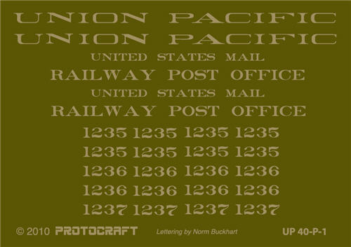 Previous Return to list of all Passenger & Head End Cars decals in 1:48 scale Next 40' Harriman Postal car lettering for Union Pacific