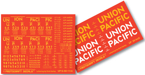 G-50-11(a). Cars repainted after July 1947 applied Armour yellow lettering - see Protocraft Decal set UP G-50-11(b). In 1956, 20” billboard