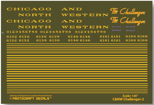 Previous Return to list of all Decal Line in 1:87 Scale Next lettering set for C&NW’s 1937 Challenger train