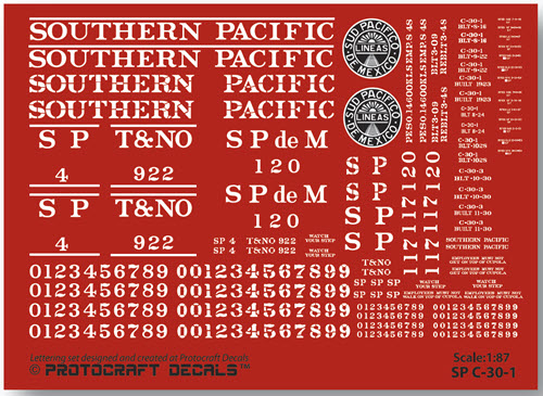Previous Return to list of all Decal Line in 1:87 Scale Next lettering for SP/T&NO & SPdeM C-30 cabooses
