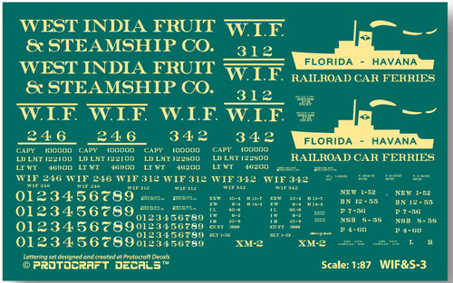 Previous Return to list of all Decal Line in 1:87 Scale Next lettering set for West India Fruit & Steamship Co’s 10’-6” H.I. green boxcars - off-yellow scheme