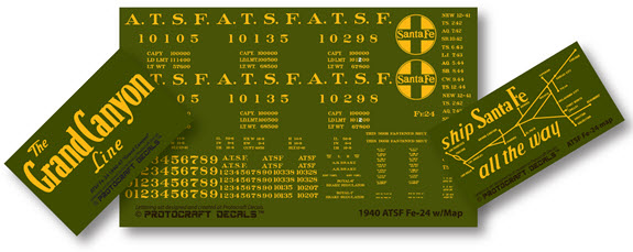 Previous Return to list of all decals in this line ATSF Next lettering for Santa Fe’s Fe-24 as delivered: gold on green 1940 Grand Canyon scheme