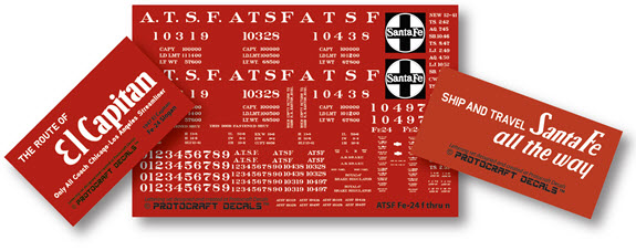 Previous Return to list of all decals in this line ATSF Next lettering for Santa Fe’s Fe-24 1947 "El Capitan" for gen. freight service: white lettering on mineral brown car