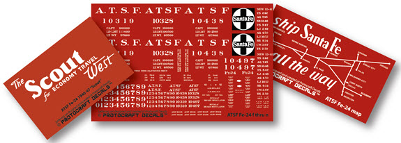 Previous Return to list of all decals in this line ATSF Next lettering for Santa Fe’s Fe-24 1940 “Scout” for gen. freight service: white lettering on mineral brown car