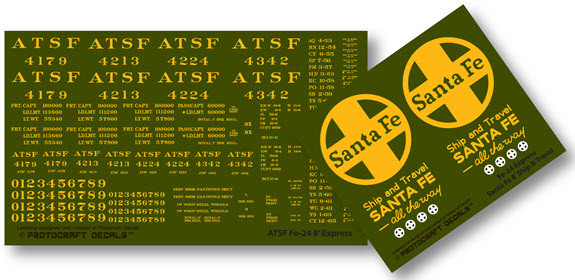 Previous Return to list of all decals in this line ATSF Next lettering for Santa Fe’s Fe-24 1959 8’ Cross: gold on green: Express service