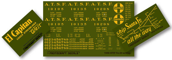 Previous Return to list of all decals in this line ATSF Next lettering for Santa Fe’s Fe-24 as delivered: gold on green: 1940 El Capitan scheme