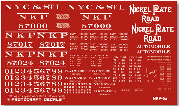 Reporting Marks and Road numbers were all 9” high. This lettering set is for the as-delivered scheme with the curved leg in the R. After 1945, when repainted, the lettering intials NYC&StL were dropped above the reporting marks; and in 1946 the longer legged R was applied .