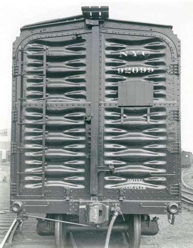 ![]() In July 1941, NYC’s Despatch Shops built 100, 50’ boxcars with an 8’ side door and an end door, under DSS #772B. Classified as NYC’s Lot 693-B and assigned road numbers as Series 92000-92099. These constituted the NYC’s only 50’ cars with end doors. The specific use for this order has not been found, perhaps aircraft bodies or wings, but later some cars had their roofs raised to accommodate oversize cargo. With the maximum approved AAR height of 10’-6”, cars had 5/5 Dreadnaught “B” end with the new stronger round (W) corner construction, Universal Power hand brakes and wood running boards. “A” end had a 5/5 Dreadnaught end door assembly from Standard Railway Equipment of Chicago. Unique to a small group of cars produced at this time were the additional edge under the Murphy raised panel roof, creating double-lapped edges as a further step to prevent moisture seepage. Paint & Lettering: Cars painted with NYC red-brown: TCP-221. Underbody and truck side frames coated with black car cement. Wheels and axles left unpainted and allowed to rust and gather road grime. Lettering all white stencil paste. Note: Up until mid-1944 to 1945, cars were stenciled without the black background in the NYC oval. At the end of this period and up until the modernized scheme was adopted in 1955, NYC went back to having black backgounds in the oval. Decal set designed and created at Protocraft Decals ![]() ![]() Background color shown above is not included in decal sheet |