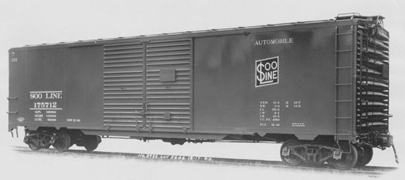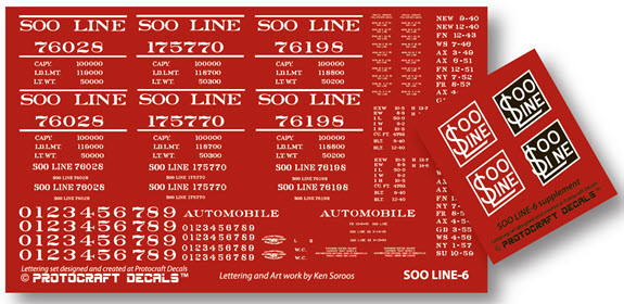 ![]() In September of 1940, the SOO received 100 double-door autocars from Pullman-Standard Car Company, Lot 5632, as Series 76000-76198 (even numbers only). At the same time SOO’s subidiary Wisconsin Central received an additional 100 cars from Pullman-Standard Car Company, Lot 5646, as Series 175700-175898 (even numbers only). Note the WC in the upper left hand corner of the car denoting that this car series is assigned to subsidiary Wisconsin Central. SOO’s double-door autocars were unique in that the double doors were centered rather than the left staggered positioning on autocars. (CGW was the only other road to also have centered doors) Cars were marked ‘AUTOMOBILE’ because of AAR lettering standards, however the cars were built for newsprint roll loading and staggered doors were actually a disadvantage for forklift loading large rolls. Paint & Lettering: As delivered the cars were painted SOO’s oxide red: TCP-243 . Ends, underframe and truck side frames coated with black car cement. Between 1936 and 1945 the paint and lettering scheme displayed the white parallelogram emblem with the black background. Beginning in 1949 and through 1951, the black backgound was removed and the parallelogram was with white outlines only. This applies to all repaints during this period. Beginning in 1951, the SOO went to the 48“ high billboard lettering and the parallelogram was discontinued. Footnote: The original Wisconsin Central (1893-1909) was leased by the MSt.P&SSM in 1909. The word ‘Sault” of Minneapolis, St. Paul & Sault Ste. Marie, is pronounced “soo”, hence the road’s nickname which later became it’s legal name. Decal set designed and created at Protocraft Decals ![]() ![]() Background color shown above is not included in decal sheet |