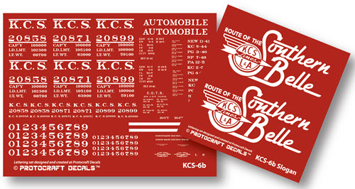 ![]() In November of 1941, the Kansas City Southern took delivery of 50, 50’ double-door automobile cars from Pullman-Standard Car Manufacturing Co, under Lot 5682, and assigned road numbers as Series 20850-20899. Equipped with auto loading racks as delineated by the white stripe on the right hand door. The cars were painted PPG Carhide KCS color (box car brown) close to TCP-181. Roof, running boards, underframe and truck side frames coated with black car cement. Wheels unpainted and left to gather rust, axle grease and road grime. Decal set designed and created at Protocraft Decals ![]() Background color shown above is not included in decal sheet |