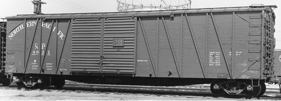 Paint & Lettering: Car painted NP freight car brown: TCP-193. (from paint chips for Dupont Dulux Brown, and Pillsbury Car Hide Brown). Post 1942 cars would