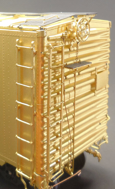 ![]() In January 1942, the ERIE ordered and received 100 40' autocars from American Car & Foundry under Lot 2288. These were assigned Series numbers 95000-95099 by the ERIE railroad. They were equipped with 5/5 Dreadnaught ends from Standard Steel's Chicago plant with "W" design corners, Youngstown doors with a narrow 12'-6"' opening, U.S. Gypsum running boards and brake step, Universal hand brake assembly, National B-1 solid bearing trucks, and 8/8 rung ladders. The all brass Protocraft model has been carefully replicated by BooRim Precision in Korea using AC&F drawings supplied by the Museum of Transportation in St. Louis with consultant Ed Hawkins. The all brass trucks have ball bearings for easy rolling and sintered steel rib-back wheels. Models are designed to accept the Kadee or Protocraft coupler box. Only 30 models built. Part #3306-O for O scale and #3306-P for Proto:48. Correct decal sets from Protocraft Decals: as-delivered with small diamond, and the 1947 repaint scheme with the 72" diamond ![]() ![]() ![]() |
