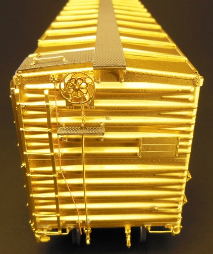 In March 1944, the SSW took delivery of 100, 40’ double-door autocars built at the road’s Pine Bluff, Arkansas shops, as Series 46200-46299. The cars had an inside height of 10’-6”, 5/5 Dreadnaught ends and were equipped with Royal F brake adjustors, Klasing hand brake assemblies, Morton running boards and 5/5/5/5 Youngstown 14’ doors and Barber S-2 friction bearing trucks (model rolls on ball bearings with sintered steel rib-back wheels). Model is beautifully built in all brass by BooRim Precision in Korea to actual builder’s drawings. This as-delivered lettering scheme is available from Protocraft Decals, part # SSW-7a. In the 1950’s the cars were repainted and lettered with the new large COTTON BELT scheme: Protocraft Decals part #SSW-7b.