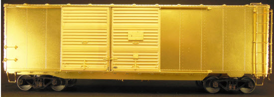 In February 1947, the SSW received an additional 150 40’ double-door autocars built in their Pine Bluff, Arkansas shops, as Series 46300-46449. These cars were 10’-6” IH and had the new Improved Dreadnaught 4/4 ends, Ajax hand brake assemblies, Morton running boards and 3/3/3 lightweight Youngstown 14’ doors, and A-3 Ride Control trucks (model rolls on ball bearings with sintered smooth back steel wheels) Beautifully built in all brass by master builder BooRim Precision of Korea. Correct decals are available from Protocraft Decals Part #SSW-7b.