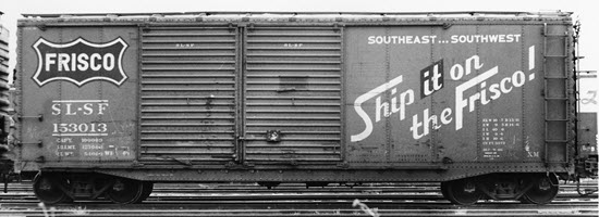 Beginning in 1949, the cars were renumbered into the 153000-1532999 Series and began to receive the larger ‘beaver’ medallion and the slogan “Ship it on the Frisco” applied to the right side. Both lettering schemes are accurately drawn and available from Protocraft Decals.