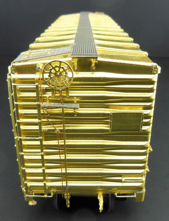 The NKP received 1,000 of these cars, some with 6' doors and some with 7' doors, both Youngstown and 7-P Superior type, built by Pullman-Standard and Ralson Steel Car Co. in 1945-46. Model built entirely of brass construction by Boo Rim Precision of Korea, using original drawings supplied by the Pullman Library in Union, Illinois. Car comes equipped with Apex running boards, Ajax hand brake assembly and roping staples. Trucks are A-3 Ride Control design with ball bearings and sintered smooth-back steel wheels and are available in either Proto:48 or O Scale. Accurate decals are available from Protocraft Decals.