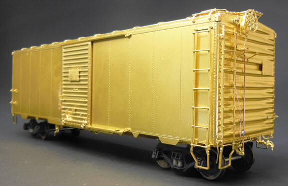 Both the Canadian National and Canadian Pacific adopted the new 1937 AAR design and proceeded to build over 19,000 boxcars each - using the three major Canadian car builders. Unique to the Canadian adoption was a copy of the Murphy flat panel roof (as opposed to the US built car’s which used the Murphy raised panel roof), the specific Canadian ladder-strirup combination; the CP’s different (from the CN) rib arrangement for an unusual 5/5 Dreadnaught end. All employed the square corner end design, wood running boards and Apex Power hand brake assemblies. Beautifully constructed at Boo Rim Precison in Korea using builder’s drawings for a very accurate model. Accurate decals for 3 different paint scheme are available at Protocraft Decals. Cars come with Bettendorf style 50-ton trucks with ball bearings and working journal covers. Wheels are hardened steel sintered rib-back design. Specify O scale or Proto:48.