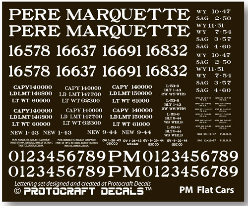 Previous Return to list of all Flat Car Decals in 1:48 scale Next lettering set for Pere Marquette 70-ton AAR flat cars